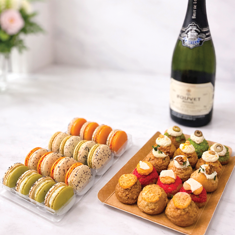 Composition du plateau de macarons salés (4 pièces de chaque) :